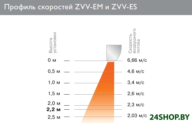 - Эффективная длина струи: 2.5 м