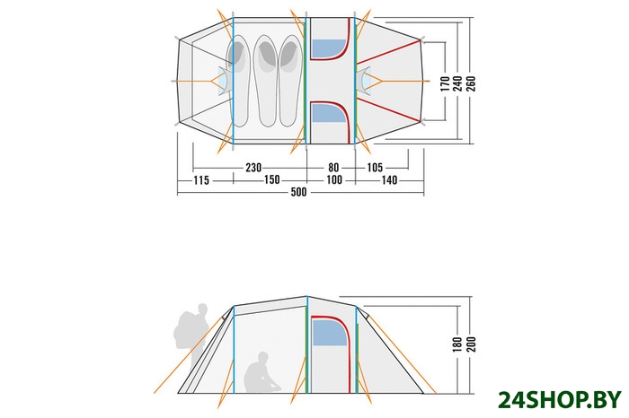- Материал внутренней палатки: нейлон