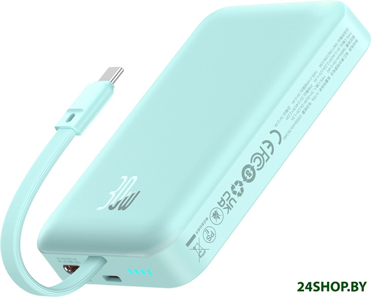 Описание и характеристики Baseus Magnetic Fast Charge Power Bank Type-C Edition 30W 10000mAh (мятный)