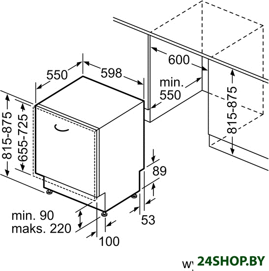 - Глубина: 55 см