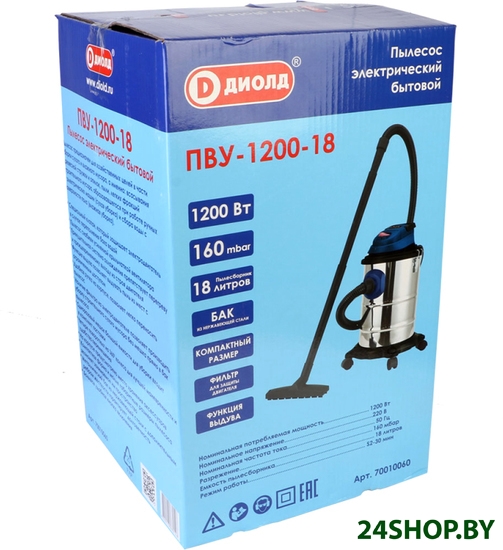 - Объём пылесборника: 18 л