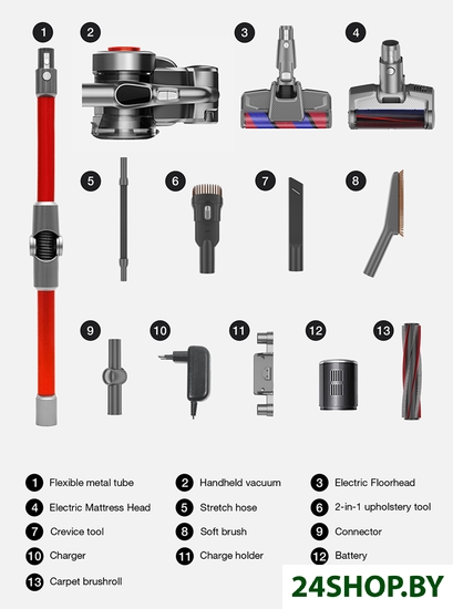 - Дополнительные насадки: мини-турбощетка, гибкий шланг