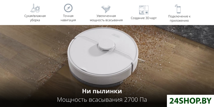 - Функциональные особенности: локальная уборка, уборка по расписанию, виртуальная стена в приложении, автовозврат на базу