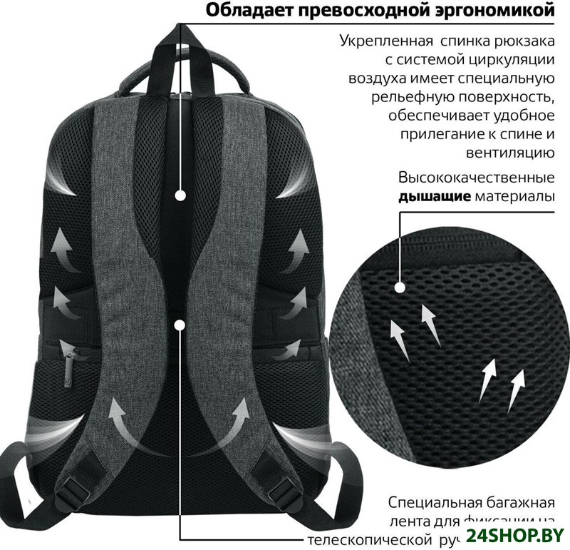 - Функциональные отделения/карманы: для ноутбука, для планшета, для смартфона, органайзер