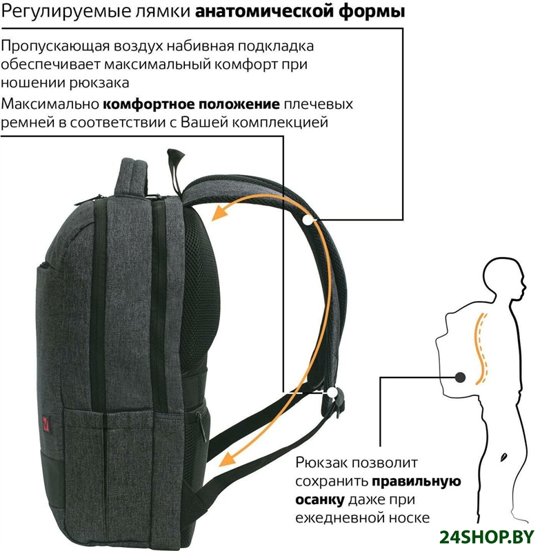 - Лямки: регулируемые, с подкладкой