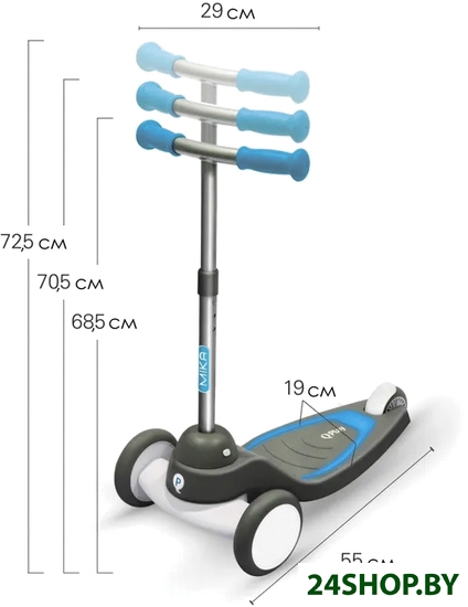 - Минимальная высота руля: 68.5 см