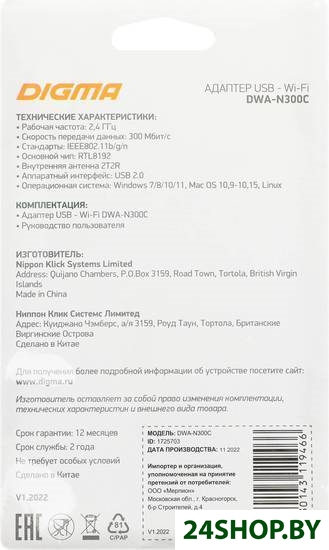 Описание и характеристики DIGMA DWA-N300C