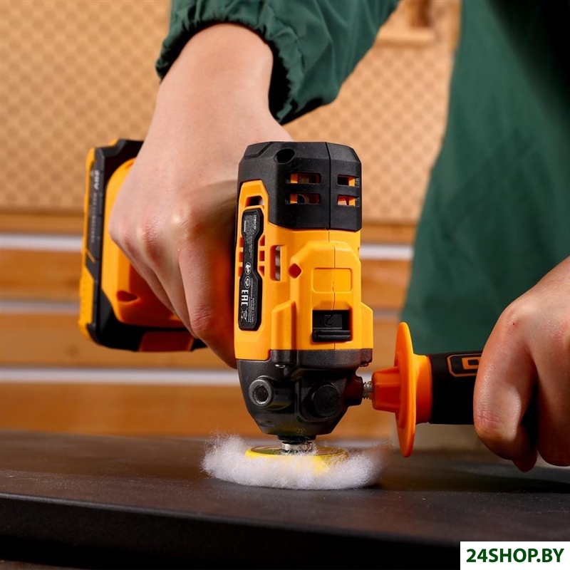 - Комплект поставки: - Шлифмашина – 1 шт.- Опорная тарелка – 1 шт.- Аккумулятор 3,0 Ач – 1 шт.- Зарядное устройство – 1 шт.- Полировальный круг (шерстяной) – 1 шт.- Дополнительная рукоятка – 1 шт.- Руководство по эксплуатации- Коробка