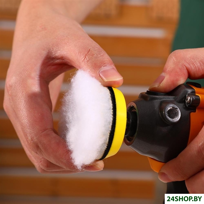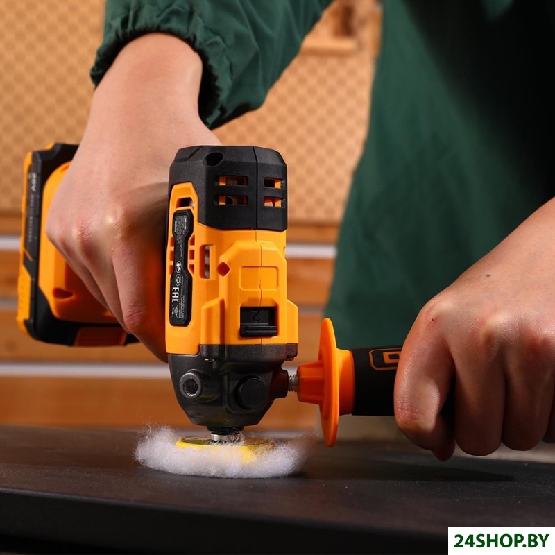 - Комплект поставки: - Шлифмашина – 1 шт.- Аккумулятор 2,0 Ач – 1 шт.- Зарядное устройство – 1 шт.- Полировальный круг (шерстяной, поролоновый) – 2 шт.- Дополнительная рукоятка – 1 шт.- Руководство по эксплуатации- Коробка