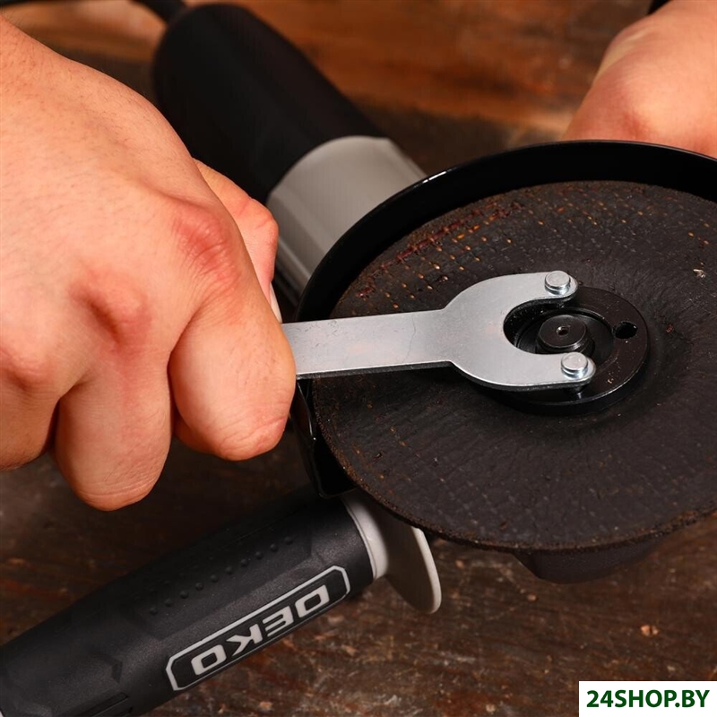 - Комплект поставки: шлифовальная машина, защитный кожух, рукоятка, фланцевый ключ, угольные щетки, руководство по эксплуатации, коробка