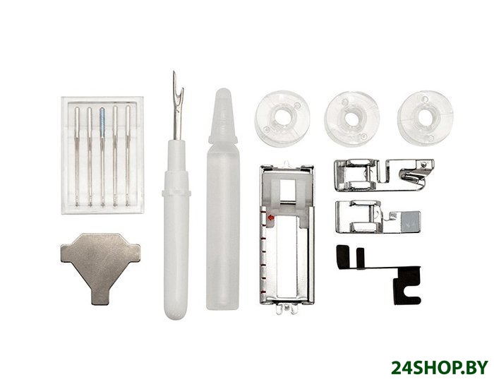 - Лапки: универсальная, для вшивания молнии, для вшивания потайной молнии, для обметывания петель