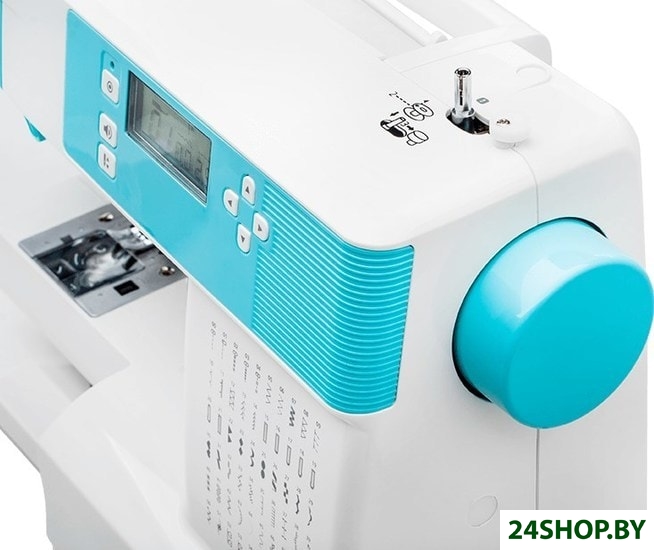 - Комплектация: большой и маленький держатели катушки, вспарыватель шва со щеткой для чистки машины, лапка для атласных строчек, отвертка, запасные иглы, дополнительные шпульки.