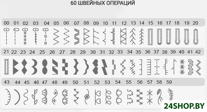 - Швейные операции: имитация оверлочной строчки, трикотажная строчка, декоративная строчка