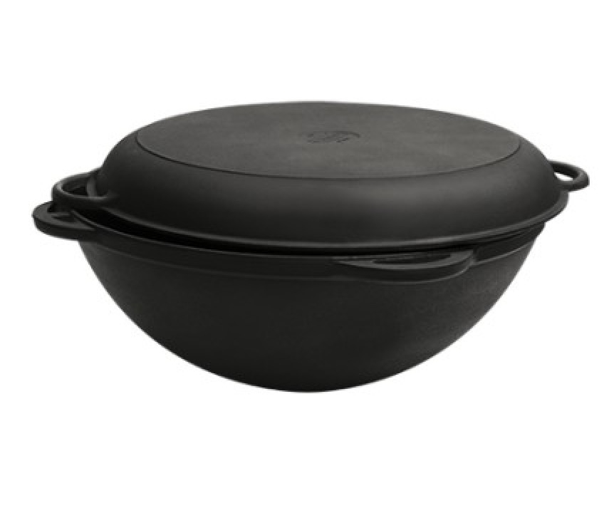 - Крышка в комплекте: чугунная (сковорода)