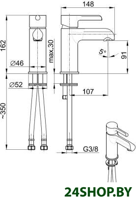 - Длина (вылет) излива: 107 мм