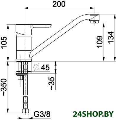 - Длина (вылет) излива: 200 мм