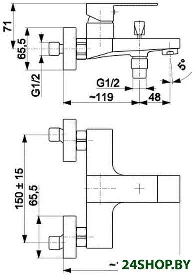 - Длина (вылет) излива: 167 мм