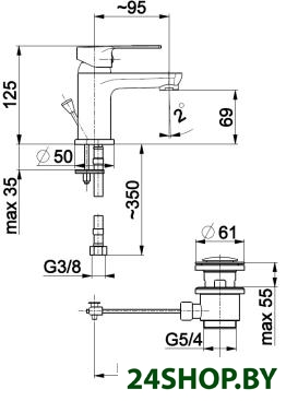 - Длина (вылет) излива: 95 мм
