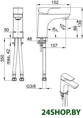 - Длина (вылет) излива: 107 мм
