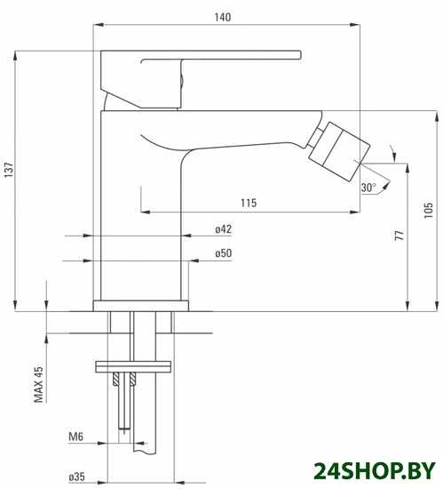 - Высота излива: 77 мм