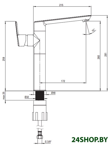 - Высота излива: 260 мм