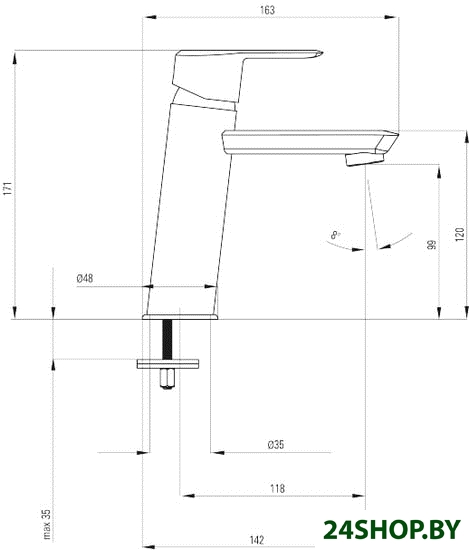 - Длина (вылет) излива: 118 мм