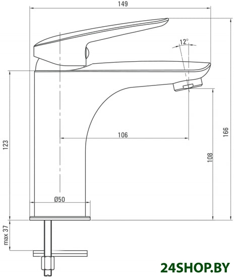 - Длина (вылет) излива: 106 мм