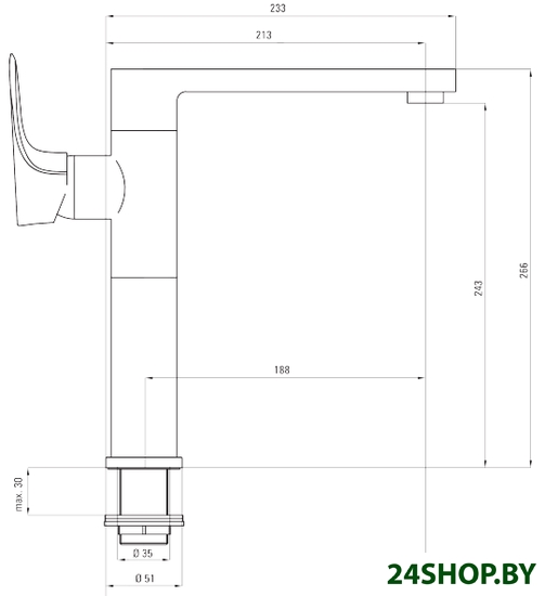- Высота излива: 243 мм