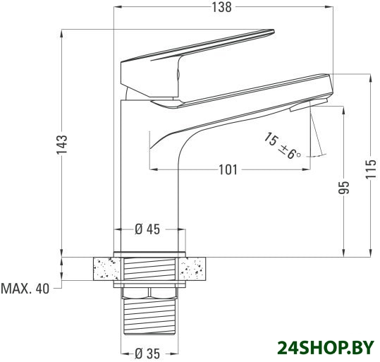 - Длина (вылет) излива: 101 мм