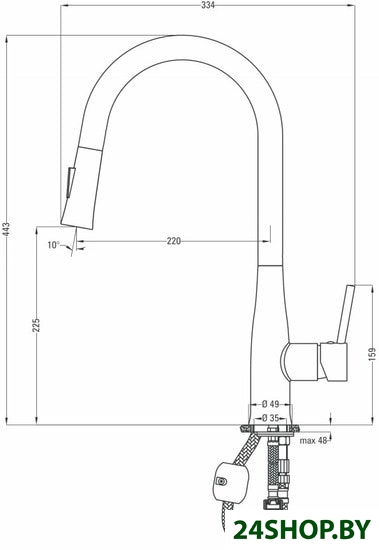 - Высота излива: 225 мм