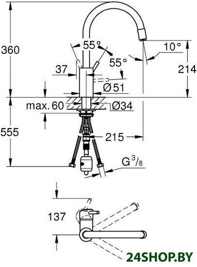 - Поворотный излив: 360 °