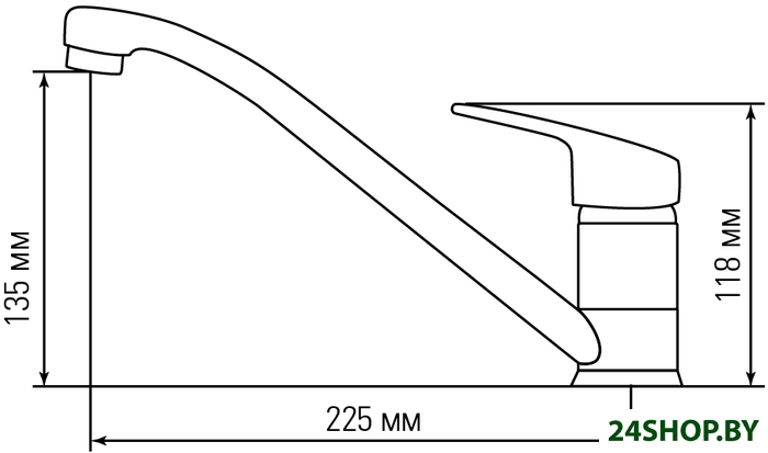- Длина (вылет) излива: 225 мм