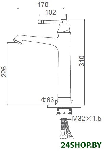 - Высота излива: 226 мм
