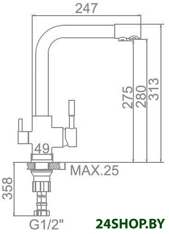- Высота излива: 280 мм