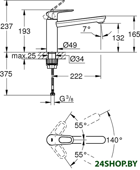 - Поворотный излив: 140 °