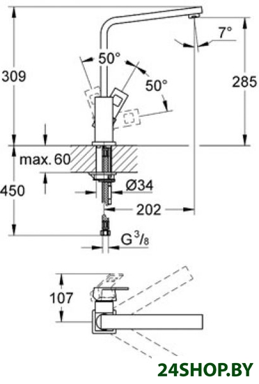 - Поворотный излив: 360 °