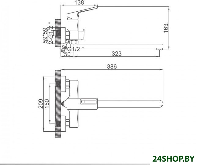 - Длина (вылет) излива: 323 — 323 мм