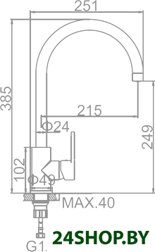 - Высота излива: 249 мм