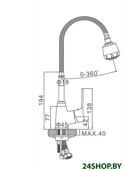 - Поворотный излив: 360 °