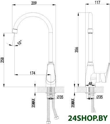 - Высота излива: 258 мм