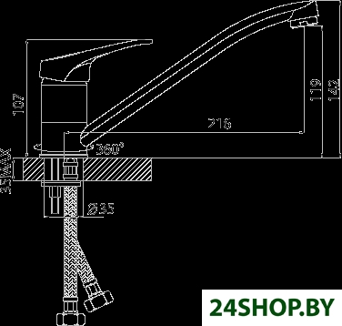 - Поворотный излив: 360 °