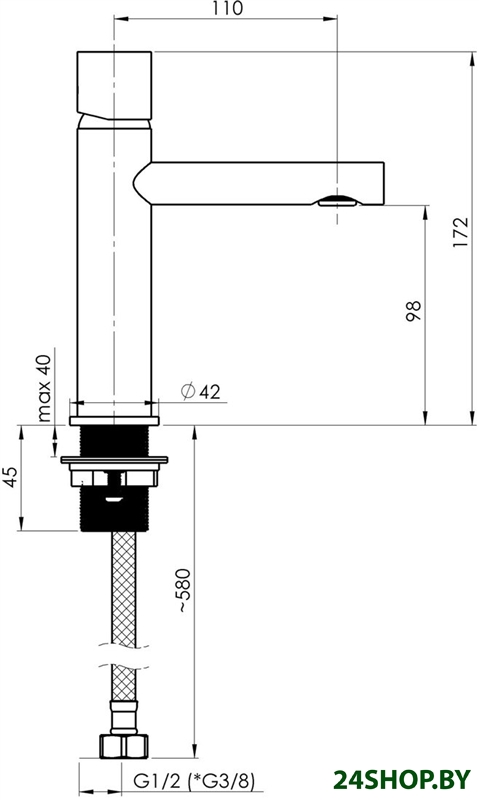 - Длина (вылет) излива: 110 мм