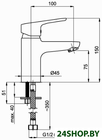 - Длина (вылет) излива: 100 мм