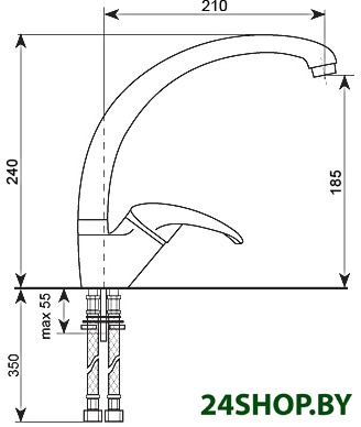 - Длина (вылет) излива: 210 мм