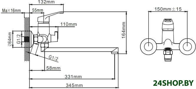 - Длина (вылет) излива: 250 мм