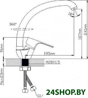 - Высота излива: 241 мм