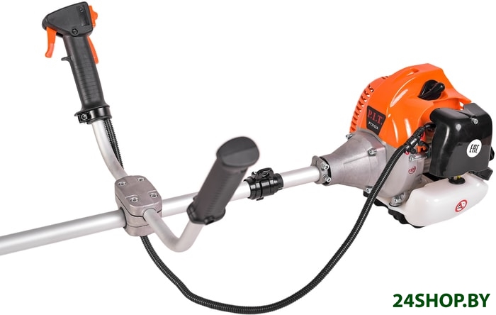 - Аксессуары: Триммер (в частично разобранном виде), коробка, ремень наплечный, шпуля с леской, диск трехлопастной, набор ключей, набор крепежа, кожух защитный, канистра, инструкция по эксплуатации