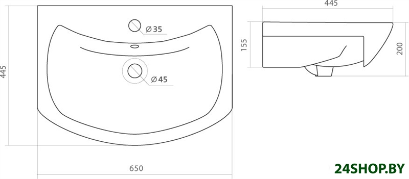 - Форма: полукруглый