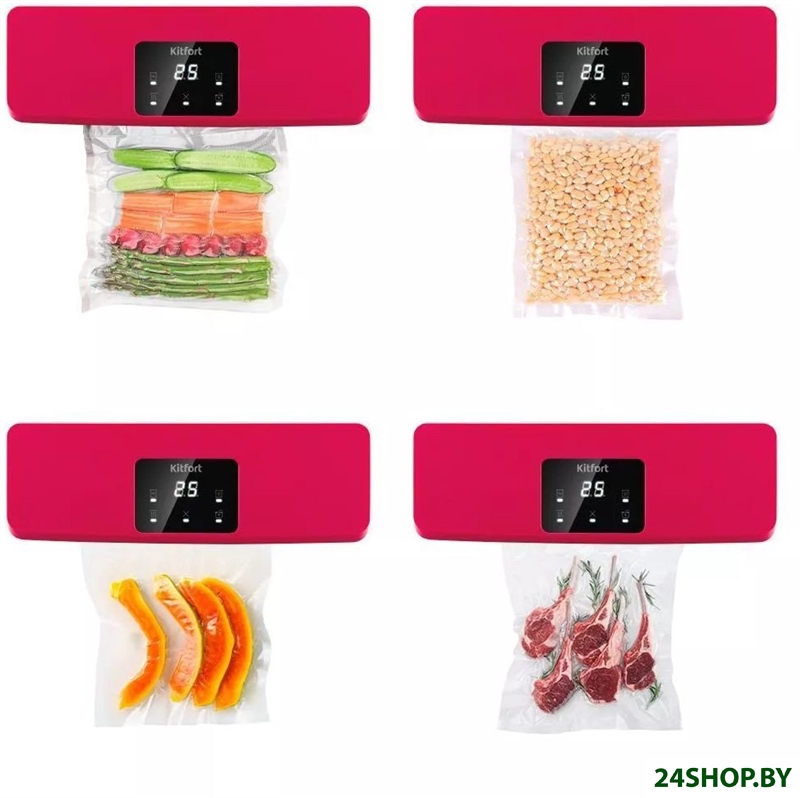 - Режимы: сухие продукты, влажные продукты, запаивание без вакуума, мгновенная остановка