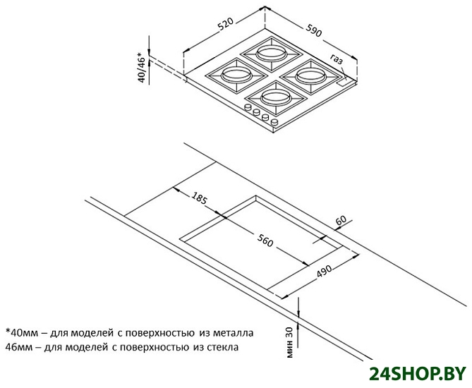 - Газовые конфорки: 4